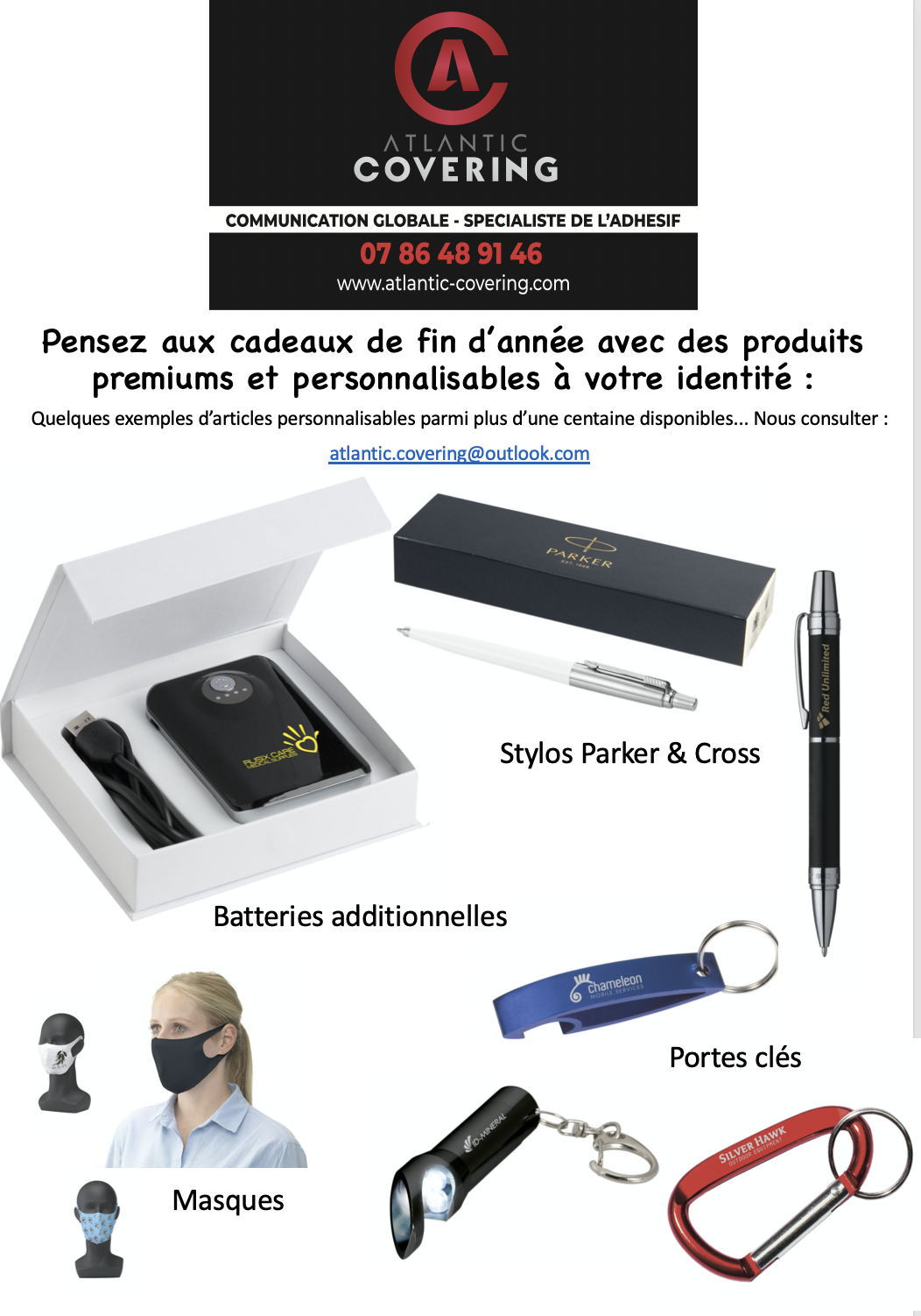 ATLANTIC COVERING vous propose grâce à ses partenaires français et européens un large panel d’objets publicitaires. Contactez-nous pour votre projet.